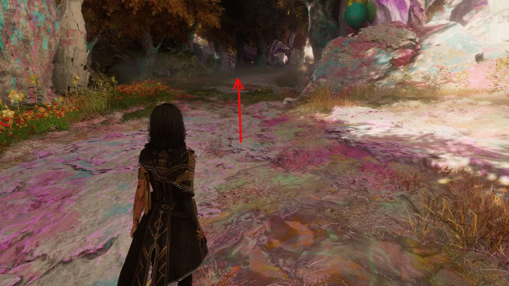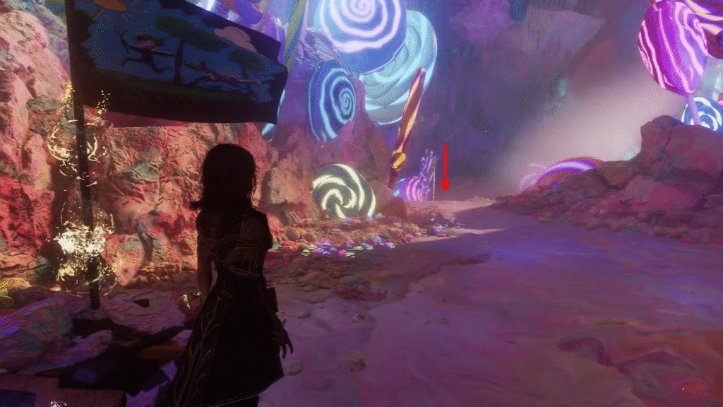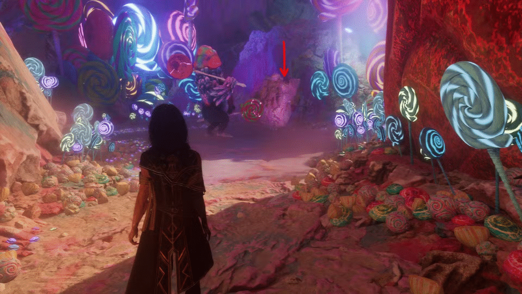 Para encontrar a entrada correta, avance pelo caminho mantendo-se sempre à esquerda. Após alguns metros, você verá uma abertura com a qual é possível interagir. É ali que o Bolo de Aniversário será necessário para prosseguir.