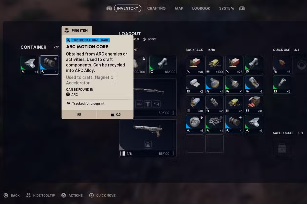 Os Inspetores são inimigos em formato de esfera metálica que vagam pelos mapas de ARC Raiders. Eles são rápidos, furtivos e difíceis de atingir, mas são a fonte mais confiável para conseguir ARC Motion Cores. Ao explorá-los, procure por um feixe de luz azul no céu — um indicativo claro da presença desses inimigos. Mapas abertos, como Dam Battlegrounds e Blue Gate, são ideais para essa caçada. Levar uma granada Showstopper ajuda bastante, pois ela atordoa os alvos, facilitando o abate e a coleta dos recursos.