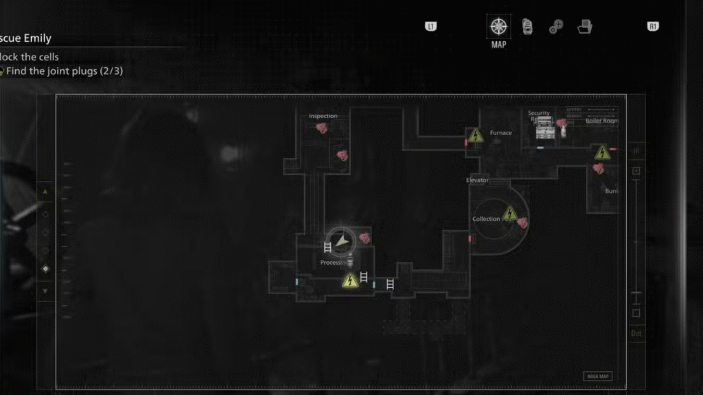 A jornada rumo ao enigma final começa dentro do porão do Centro de Cuidados, durante a busca pelos Tampões de Junta. Para acessar a sala de processamento, você precisará encontrar a chave da empilhadeira na sala de processamento e usá-la no veículo da oficina, o que abre passagem para a sala de inspeção no lado oposto. Uma vez dentro dessa área, o jogo te pede paciência: é preciso aguardar aproximadamente 15 minutos enquanto mais de 115 corpos caem na poça de sangue abaixo. Só então será possível girar a roda para drenar o líquido e descer a escada com segurança. Esse momento é propositalmente lento e pode pegar jogadores de surpresa que estão acostumados ao ritmo acelerado do jogo.