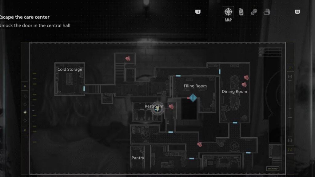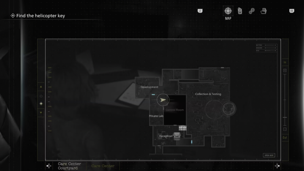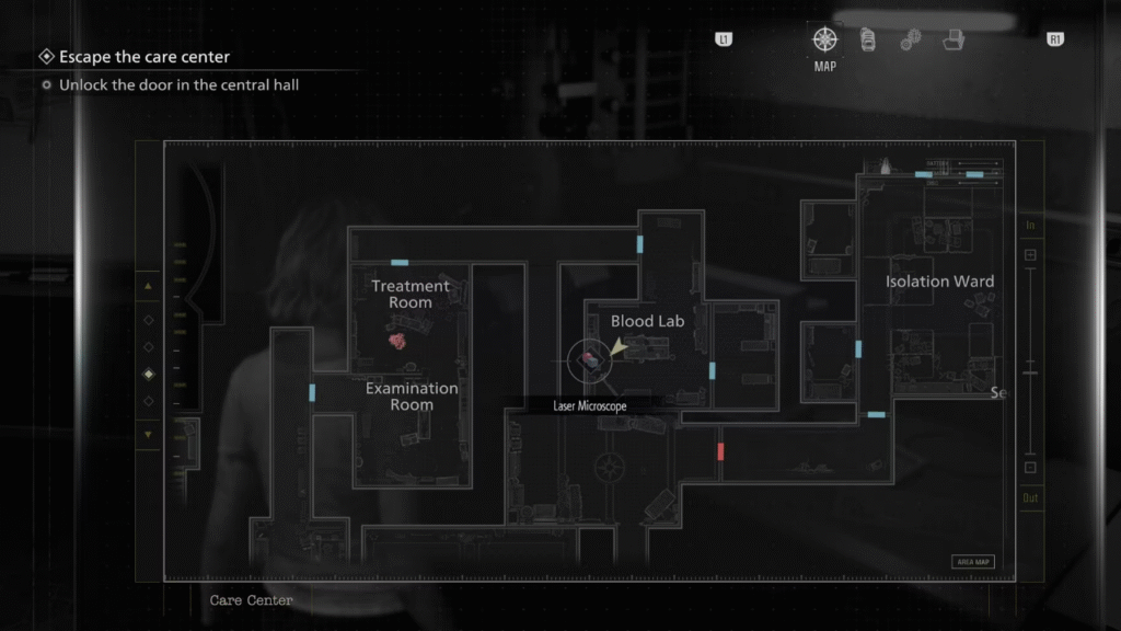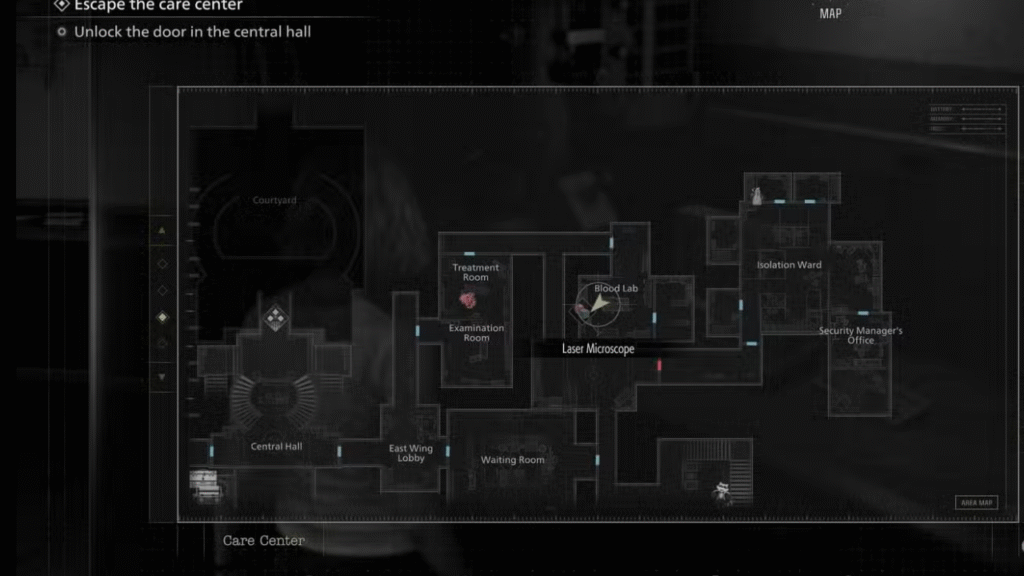 Com a Boneca de Marie registrada na Caixa de Itens, inicie uma nova partida. O ritmo da segunda jogada é diferente: você já conhece os ambientes, o que facilita a execução rápida de cada etapa. Ao chegar novamente no porão do Centro de Cuidados e concluir aquela seção, preste atenção ao elevador da área — a Mão Decepada estará posicionada ali, um item perturbador que não apareceria sem o preparo da sessão anterior. Recolha-a e leve diretamente ao Microscópio a Laser, que pode ser encontrado no Laboratório de Sangue da Ala Leste ou no Escritório da Ala Oeste, conforme sua rota preferida.