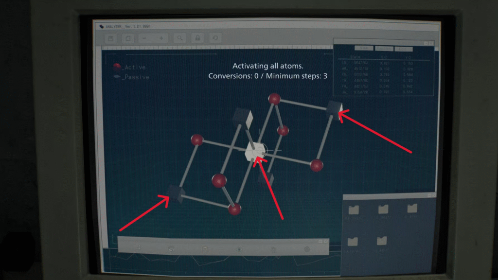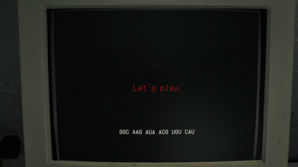 Com a Mão Decepada selecionada na máquina, clique em “Analisar” e interaja em sequência com o nó mais à esquerda, o nó central e o nó mais à direita. Quando os três forem ativados corretamente, a tela exibirá a mensagem enigmática: “Vamos brincar. GGC AAG AUA ACG UGU CAU”. Esse é o código bruto que precisa ser decifrado usando pistas espalhadas pelo jogo — mas se você quiser pular a investigação, a solução já está mapeada. As letras se traduzem da seguinte forma: G = Sol, U = Lua, C = Estrela, e a letra A é ignorada completamente na sequência final.