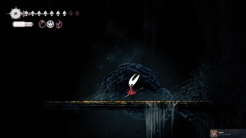 Ao fazer isso, Hornet absorve o último poder de Seda, garantindo não apenas a habilidade Pale Nails, mas também o desbloqueio da conquista Tecida em Canção de Seda, uma das mais cobiçadas por completistas.